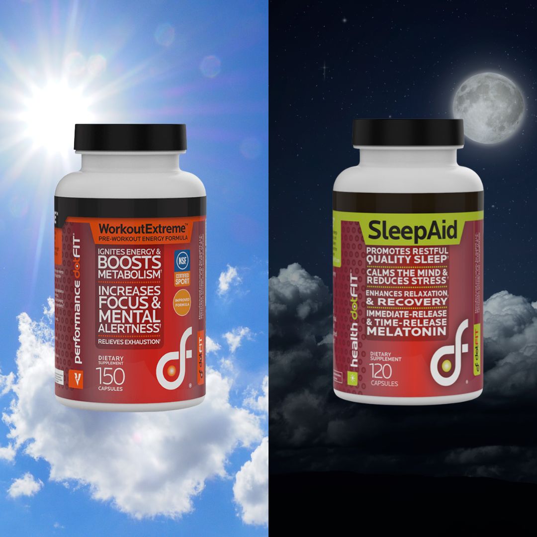 Boost daytime productivity and nighttime relaxation with dotFIT's WorkoutExtreme and SleepAid supplements—your ultimate focus and sleep solution. 🚀