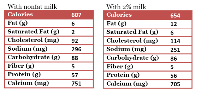 • 1  1/2 nonfat or 2% milk (or milk substitute of your choice)